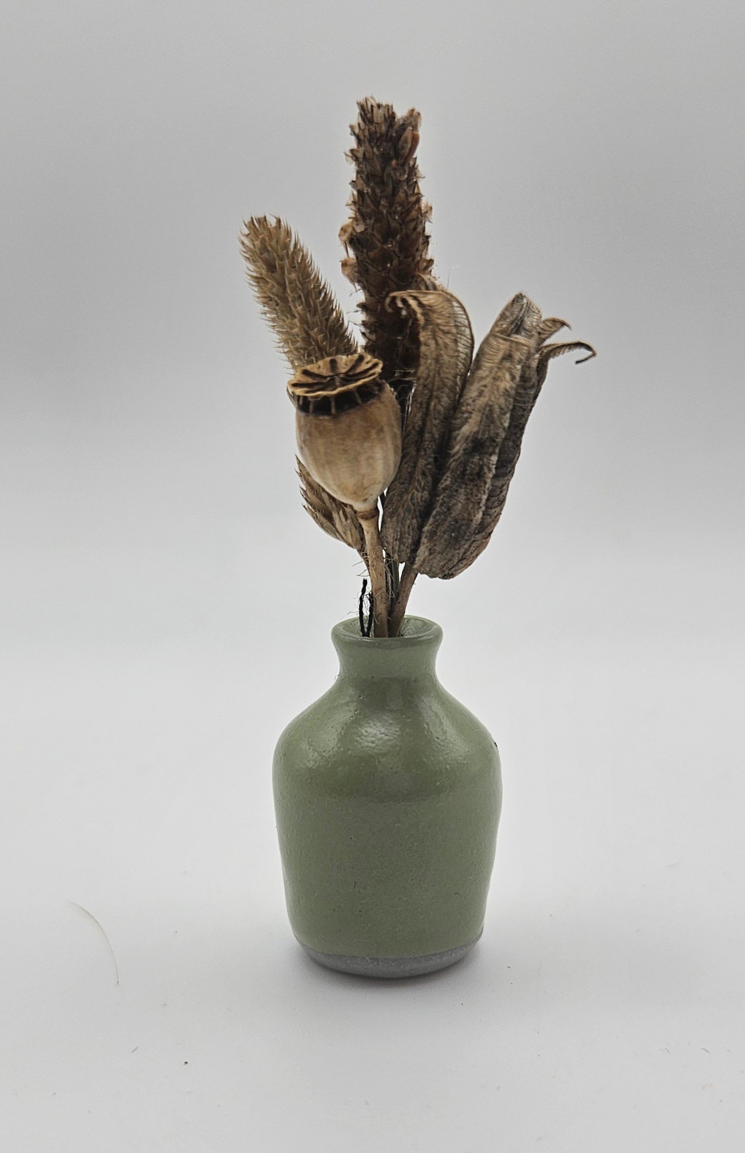 Gorgeous miniature stoneware vase in a beautiful green glaze standing at around 3cm.