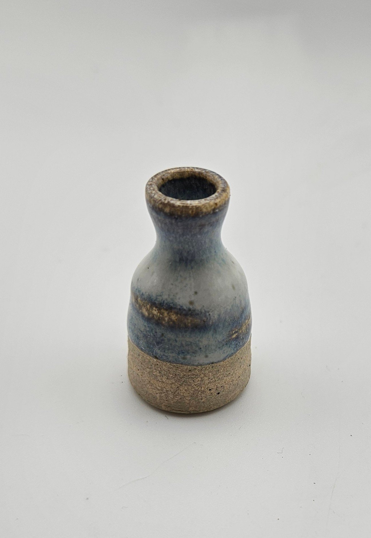 Beautiful miniature stoneware vase in a gorgeous blue white glaze standing at around 3.5cm.