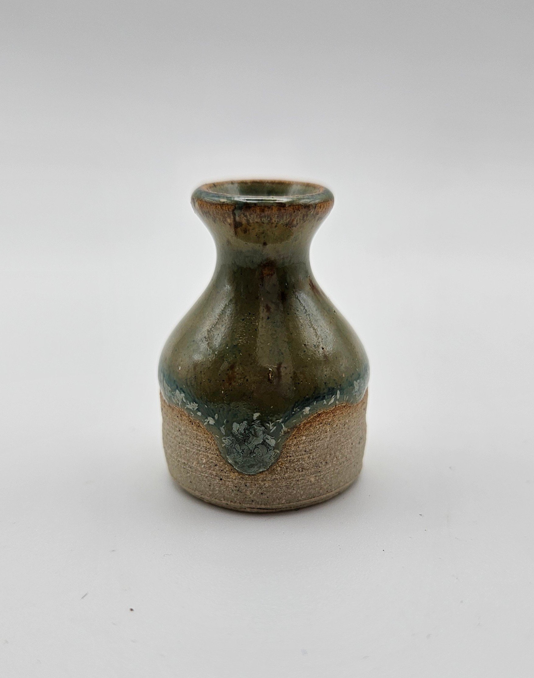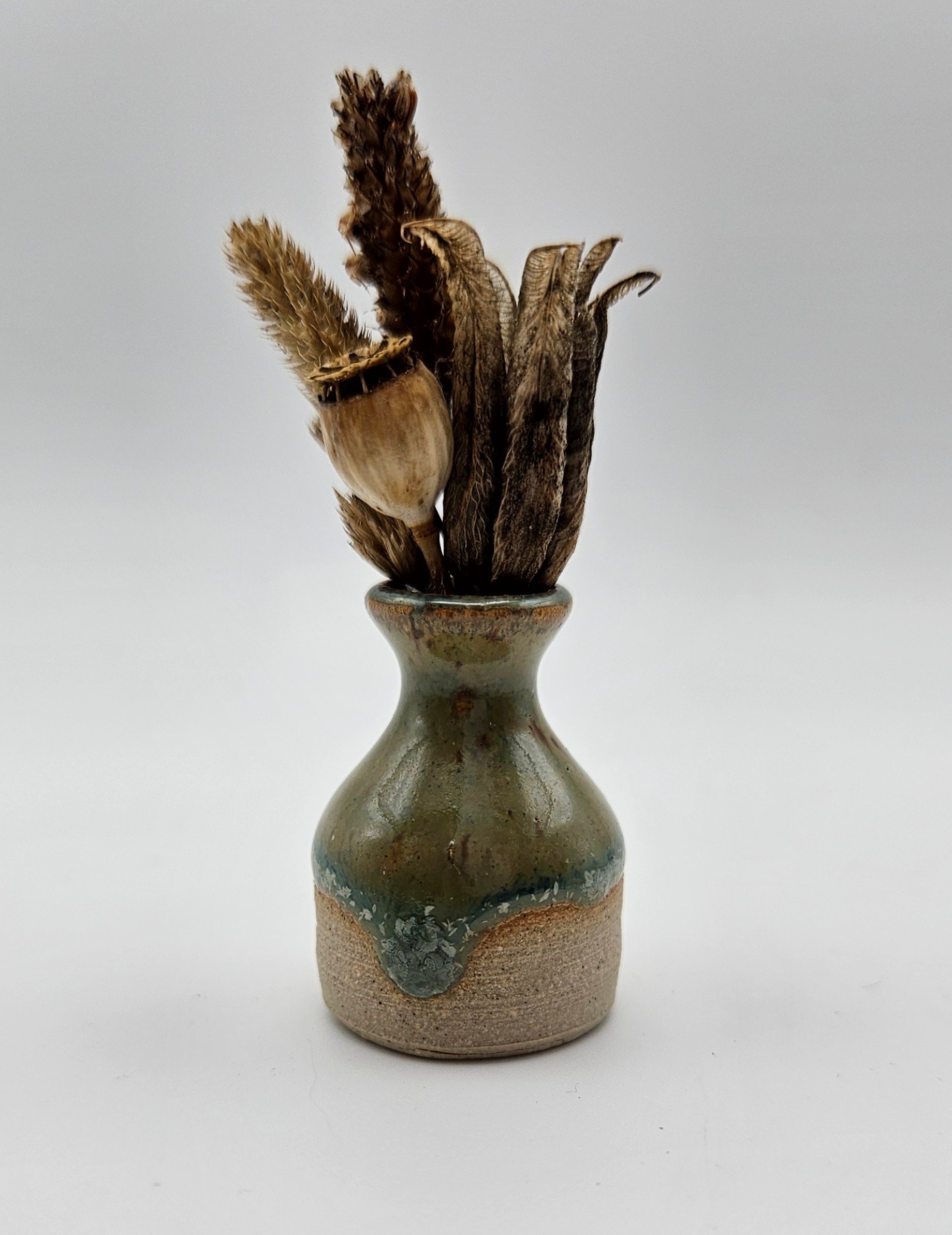 Beautiful miniature stoneware vase in a stunning translucent green glaze standing at around 3cm.