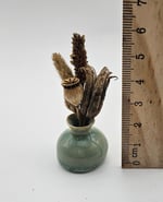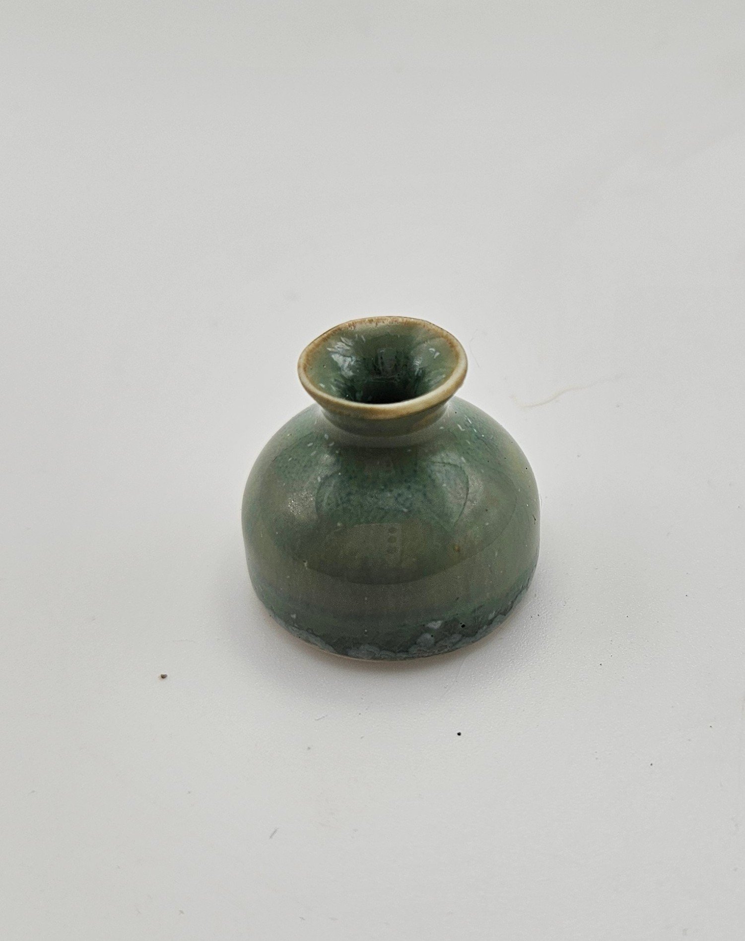 Beautiful miniature stoneware vase in a gorgeous green glaze standing at around 2.5cm.