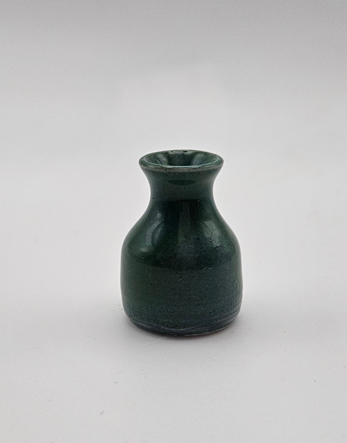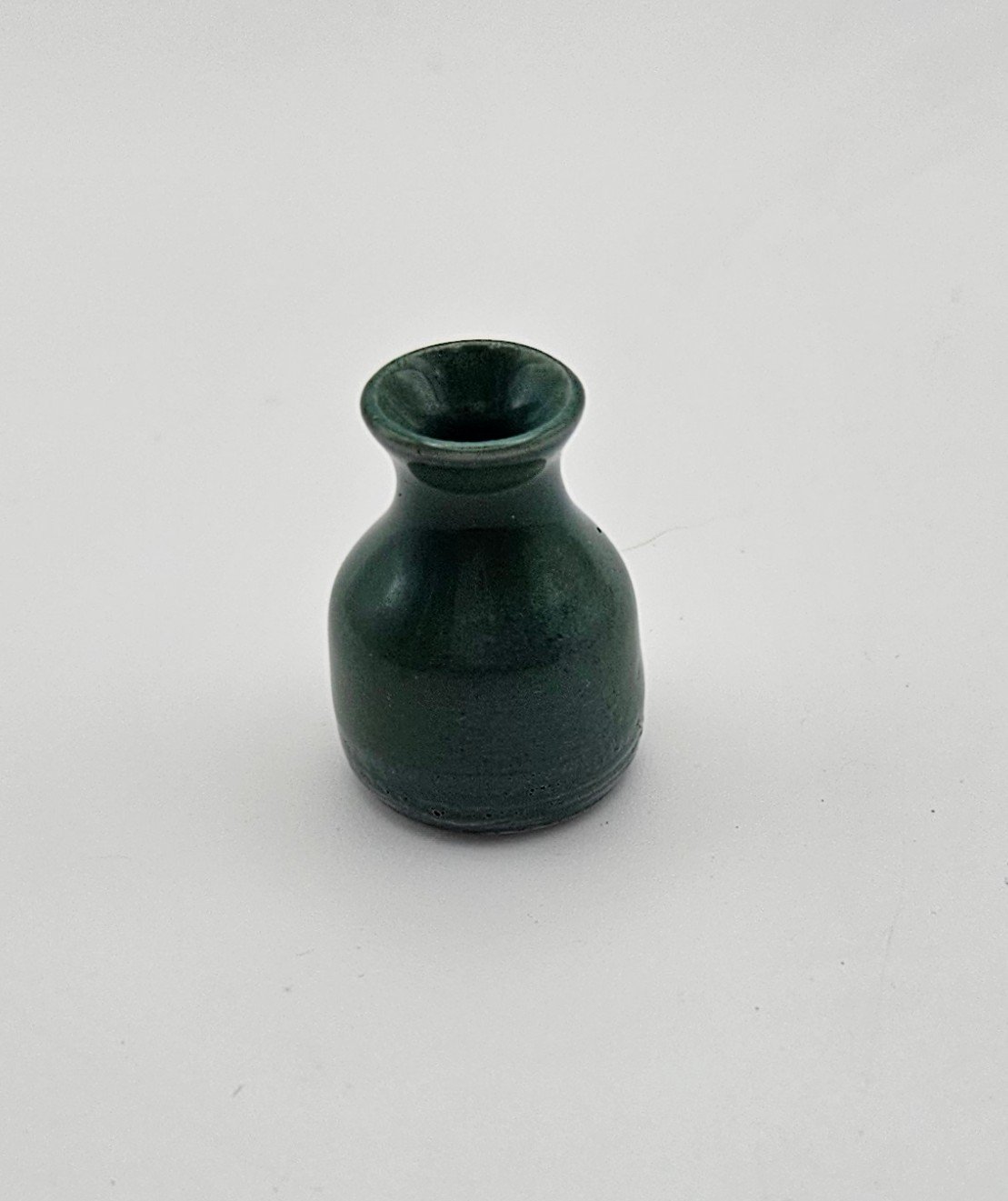 Gorgeous miniature stoneware vase in a deep green glaze standing at around 3cm.