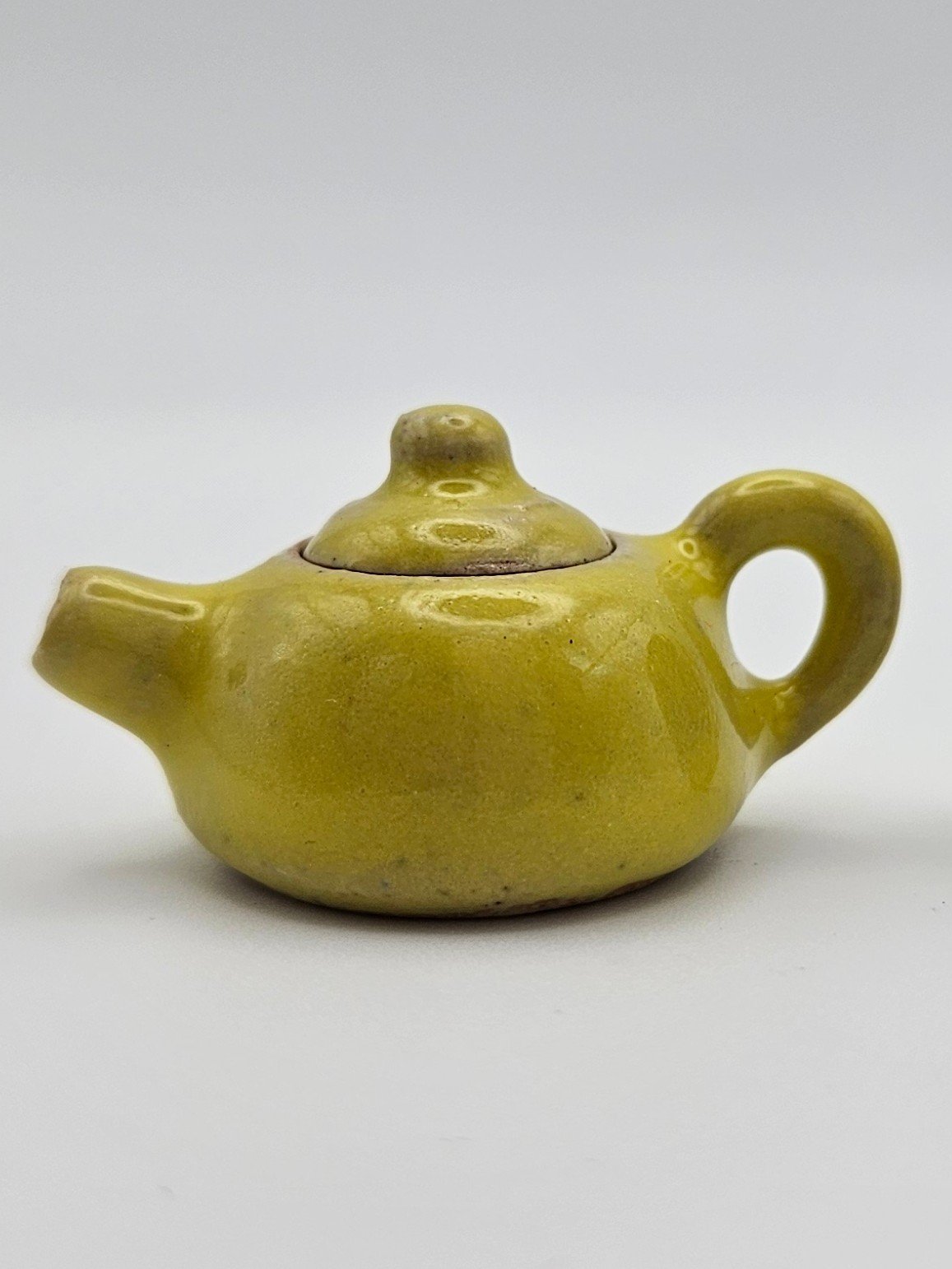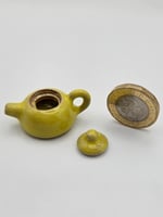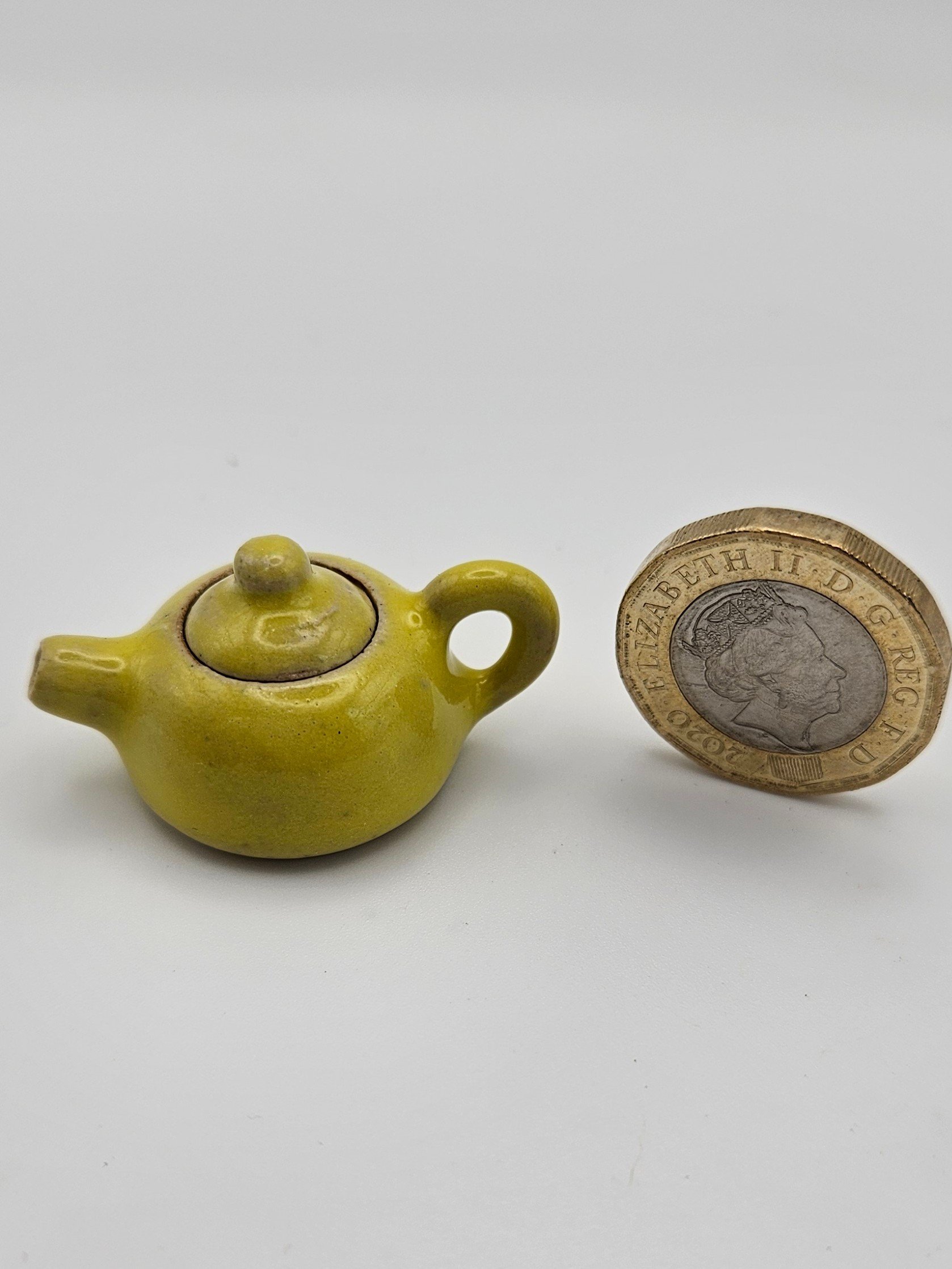 Beaautiful tiny stoneware teapot in a vibrant yellow glaze standing just over 2cm tall